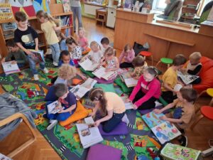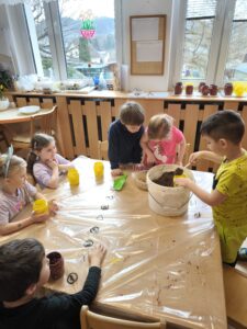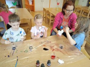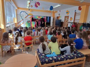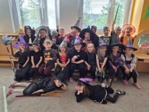 Vždy v pondělí chodíme plavat do Městského bazénu, kde se každým týdnem zdokonalujeme. S dětmi odcházejícími v září do školy jsme se vydaly přespat na Ještěd, kam jsme došly pěkně po svých. Byla to fuška, ale dokázaly jsme to. Jako každé jaro jsme se těšily na Velikonoce a tradice s nimi spojené. Nezapomněly jsme vysadit osení a ozdobit kraslice. Také nás navštívilo divadlo Koloběžka s “Barevnou pohádkou”. V dubnu jsme oslavily svátek Země naučnou cestou lesem s plněním úkolů. Jako správní předškoláci jsme navštívily Městskou knihovnu, kde jsme si povídaly o pohádkách, pohádkových bytostech a jejich vlastnostech. Celý měsíc jsme zakončily karnevalem v duchu čarodějnic – jako vždy nechyběla diskotéka, spoustu soutěží a zábavy. Samozřejmě jsme se také učily novým věcem a povídaly si o zajímavých tématech, např. o povoláních a řemeslech, velikonočních zvycích, jak chránit naši planetu, …