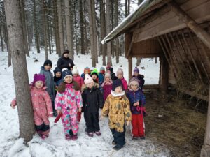 Měsíc leden jsme zakončili návštěvou krmelce, kam jsme zvířátkům donesli jablíčka, mrkve a kaštany. Odměnou nám bylo setkání se srnečkou, která byla poblíž krmelce.