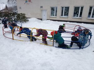 Užívali jsme si venku zimních radovánek, ježdíkování, stavění sněhuláků.